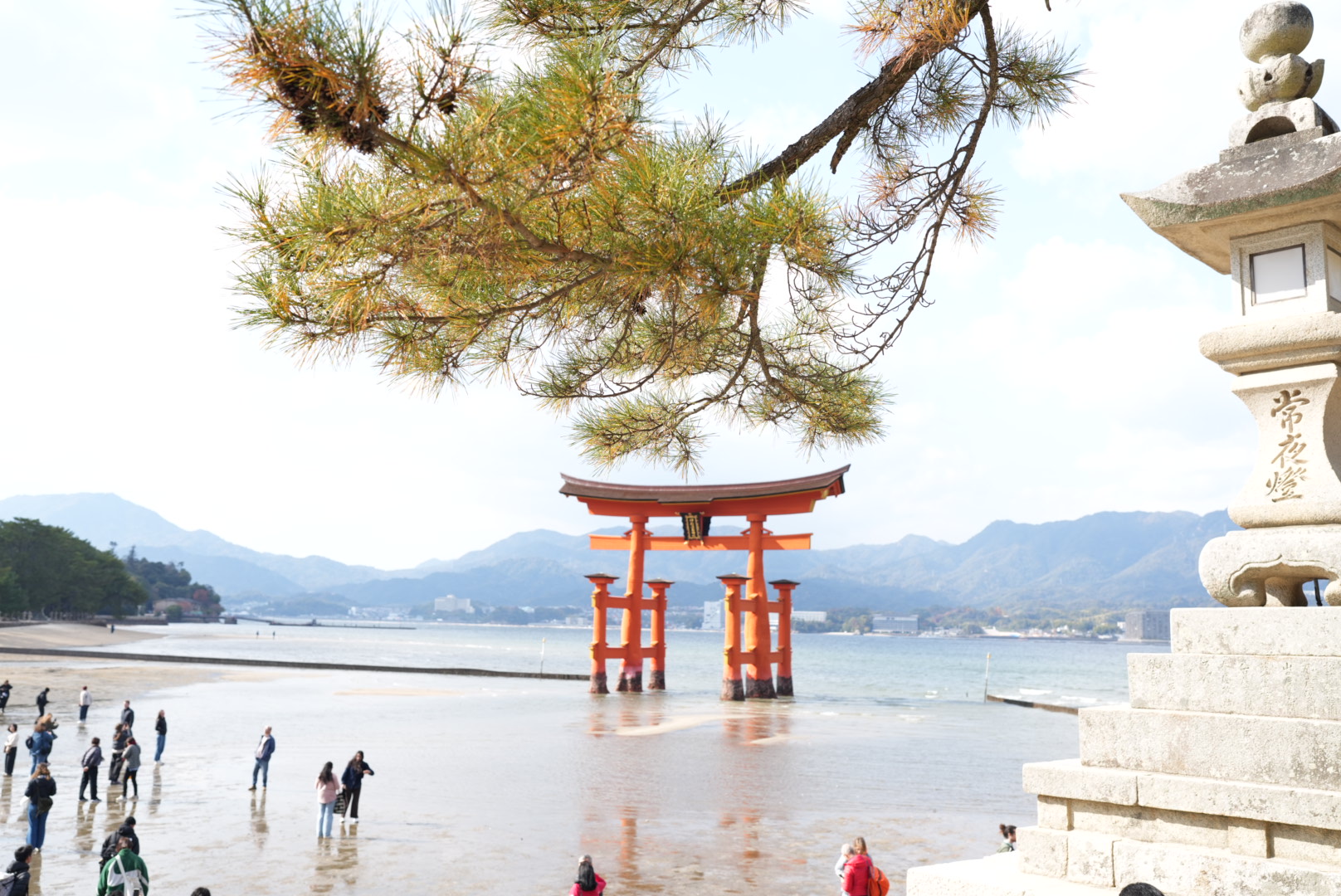 そんな鹿たちと風景を楽しんでいたら宮島といったらこれ、海の中に聳え立つ鳥居が見えてきました!